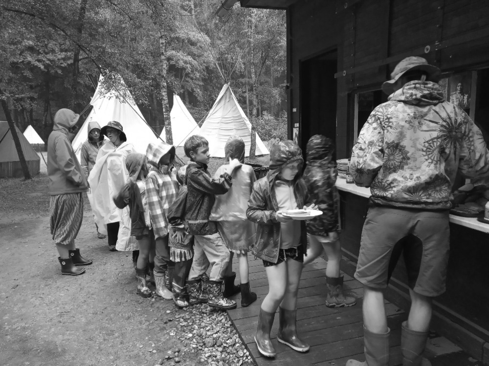 Ještě několik dní po povodni se v táboře nosila hlína v kotlících, sušily se kožešiny a opravovaly stany. A mezi tím vším pobíhala naše badatelka s diktafonem a lopatou, jakoby tu byla odjakživa.